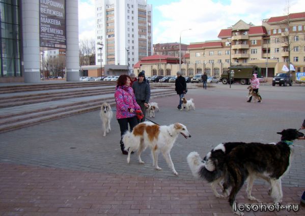 Приняли участие в показе пород охотничьих собак. Но зрителей было мало, и посетителей на выставке немного-смотреть нечего(((.